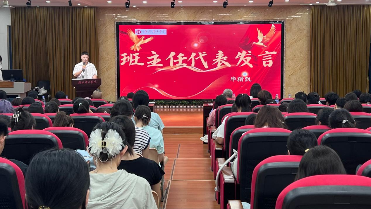 学院教师代表阮桢,作为湖北省青教赛一等奖的获得者,以“走出舒适圈”作为勉励,搭配上流利英语展现的深厚专业素养,为新生们树立了榜样。班主任代表毕猎凯博士深情寄语,鼓励同学们要把握当下,珍视大学时光,善用资源、努力成长,莫负韶华。
