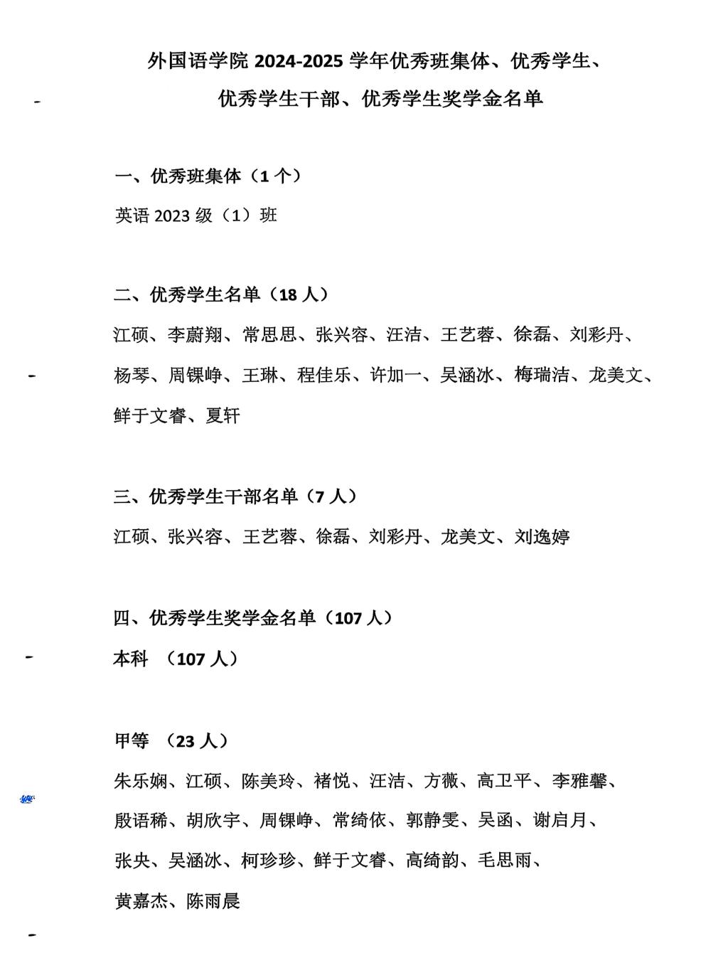 TYC234CC太阳成集团2024-2025学年优秀班集体、优秀学生、优秀学生干部、优秀学生奖学金名单