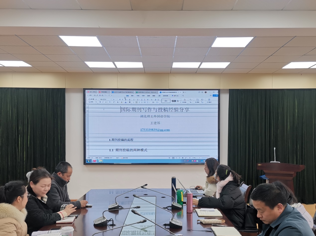 随后,王建邦博士分享了期刊投稿的经验。王博士从期刊投稿的完整流程讲起,详细介绍了投稿的两种模式,并阐述了选刊应遵循的原则以及在选刊过程中的注意事项。他还推荐了部分外语和教育类国际期刊,并结合自己在论文撰写和投稿过程中积累的丰富经验,与老师们进行了深入细致的交流。王博士鼓励老师们“树立作为一名‘学者’的坚定立场”,严格把关论文撰写的每一个环节,确保论文品质。他强调,教师们在撰写论文时要坚定自身的分析立场,同时保持开放的学习心态,认真对待来自各方的修改意见,通过不断地精心打磨,论文质量一定会得到稳步提升。