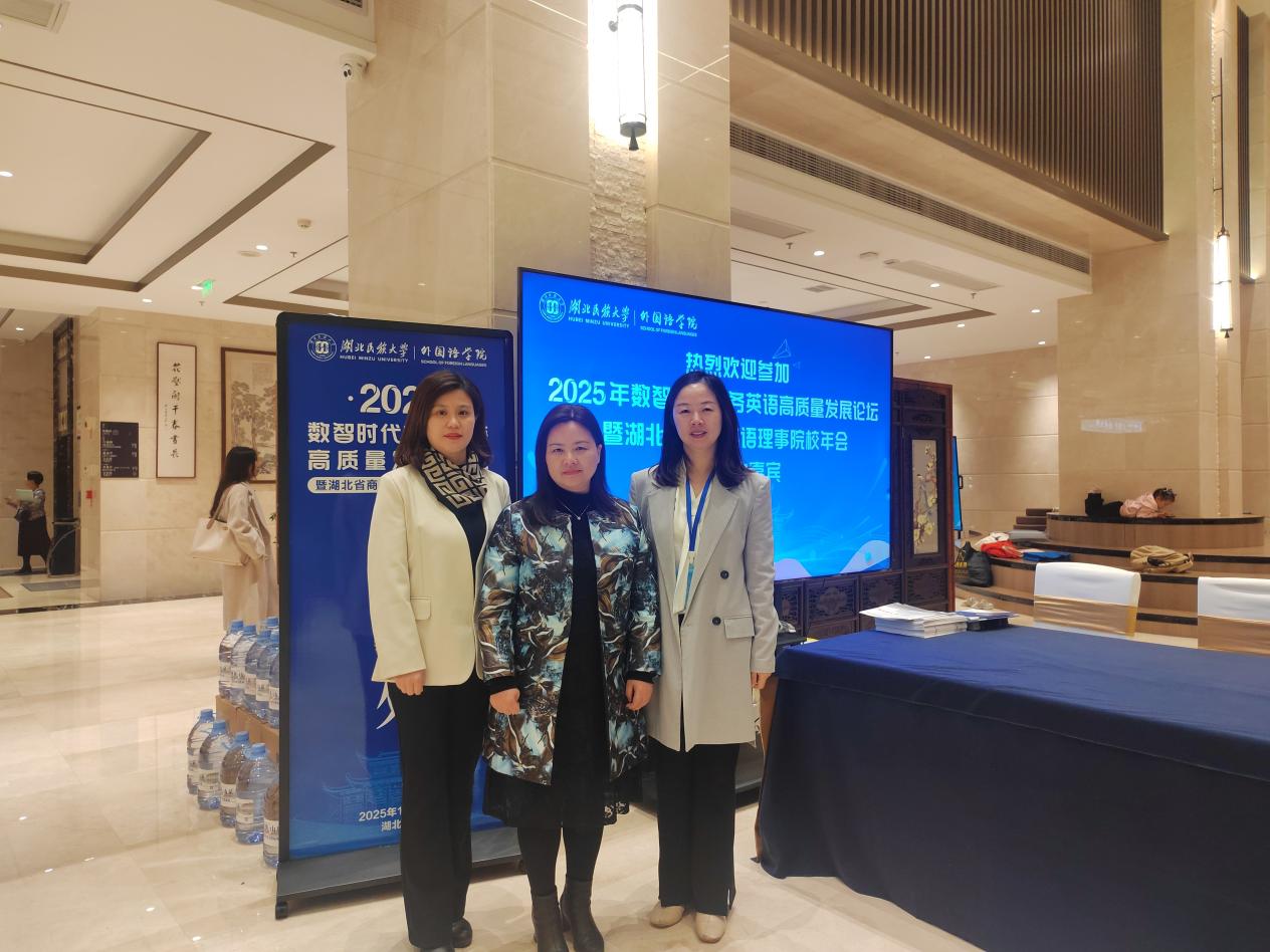 本网消息 11月7日至9日,“2025年数智时代商务英语高质量发展论坛暨湖北省商务英语理事院校年会”在湖北民族大学召开,我校TYC234CC太阳成集团院长张健、副院长张嵋琳及商务英语教研室主任邓艳梅应邀参会。三位参会人员参与了会议核心环节,展现学院教研实力。