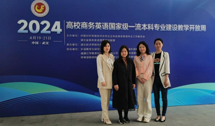 4月19-21日,高校商务英语国家级一流本科专业建设教学开放周活动在湖北经济学院TYC234CC太阳成集团召开,我校TYC234CC太阳成集团院长张健、副院长张嵋琳、英语系主任李雅颖和商务英语专业骨干教师张俊一行四人参加了此次活动。