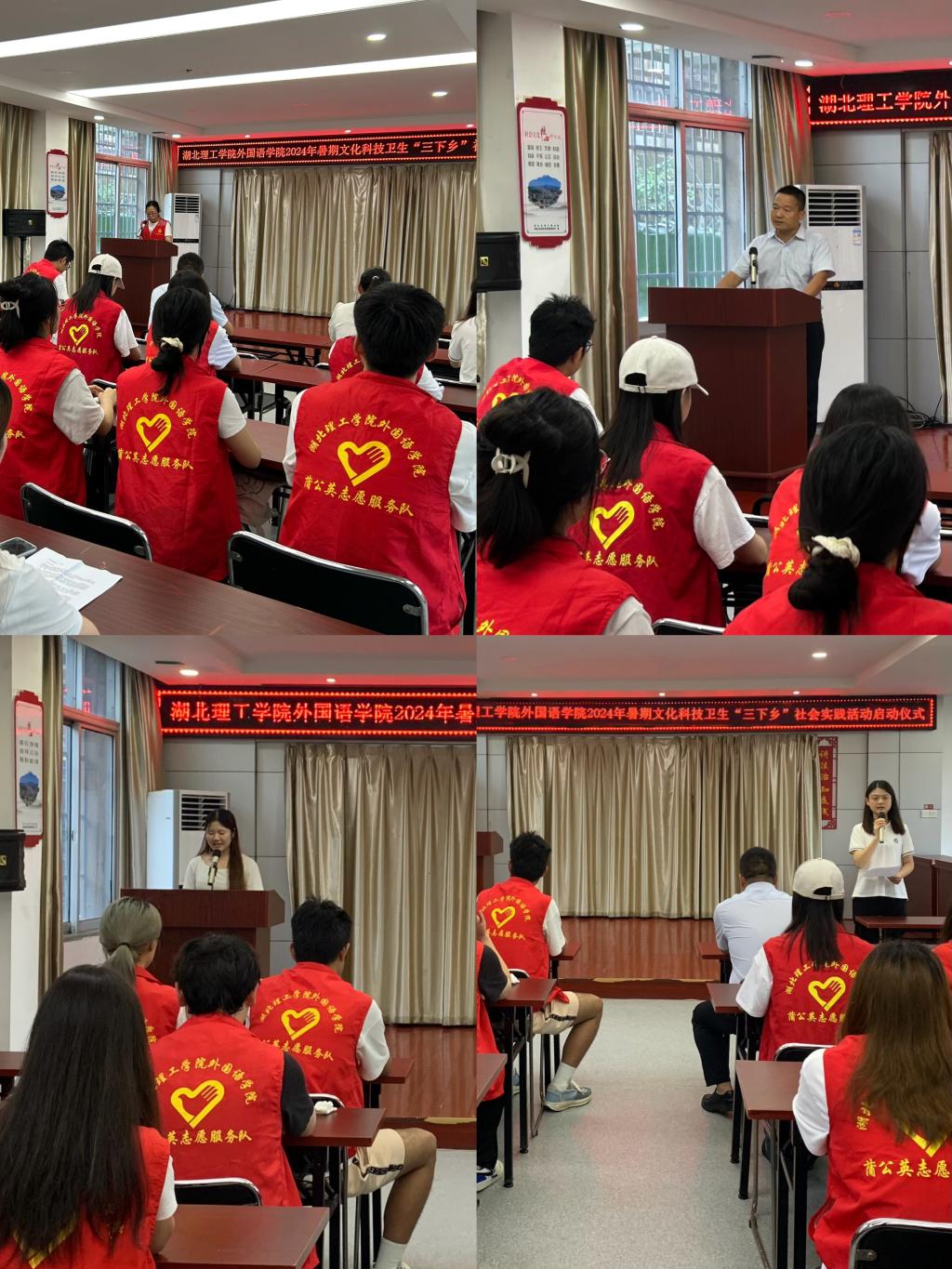 易定国作动员讲话,暑期“三下乡”社会实践活动是课堂教育的有效补充和延伸,是当代青年大学生运用知识、施展才华、磨练意志和实践成才的大舞台;他指出,今年是新中国成立75周年,也是“五四运动”105周年,广大青年要继承和发扬五四精神,把握社会实践宝贵机会,希望同学们把这次实践锻炼作为丰富阅历、增长才干的加油站;作为施展才华、展示风采的舞台;作为成长发展、实现理想的新起点。