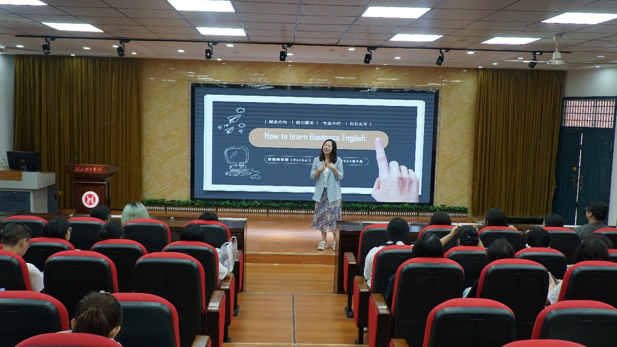 邓艳梅老师和阮桢老师就商务英语专业和英语专业对新生们进行了专业教育,详细介绍了专业特点与发展现状,学院师资情况、课程设置及毕业能力要求,帮助新生们更好地了解专业发展动态,树立专业学习信心,培养专业意识和思维能力,激发同学们的学习动力。学院还邀请了中语智汇科技(厦门)有限公司高级产品经理代鹏向同学们做“AI赋能下的传统外贸转型与跨境电商融合创新”主题讲座,为同学们以后的就业方向提供了指引。