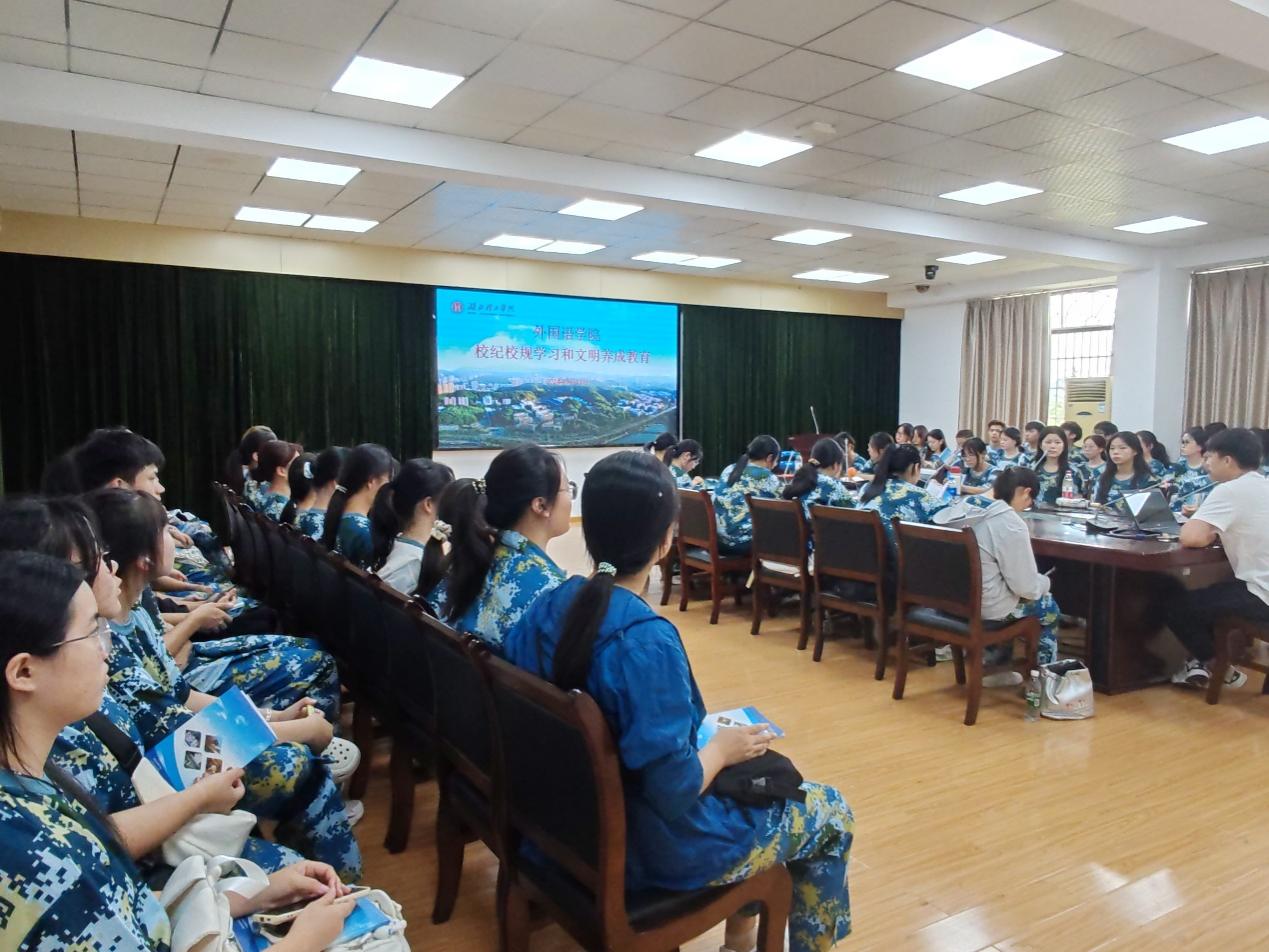 9月11日,党总支副书记易定国在X2-113室开展了民族宗教与保密安全教育,进行了反宗教极端思想教育,推动铸牢中华民族共同体意识,增强大学生防范校园非法宗教渗透意识。辅导员蔡连余在X2-304室进行了校纪校规学习和文明养成教育,为同学们讲解了校纪校规、《学生手册》等,引导同学们树立规矩意识,提升综合素养,养成文明良好习惯,进一步推进新生的学风、班风建设。