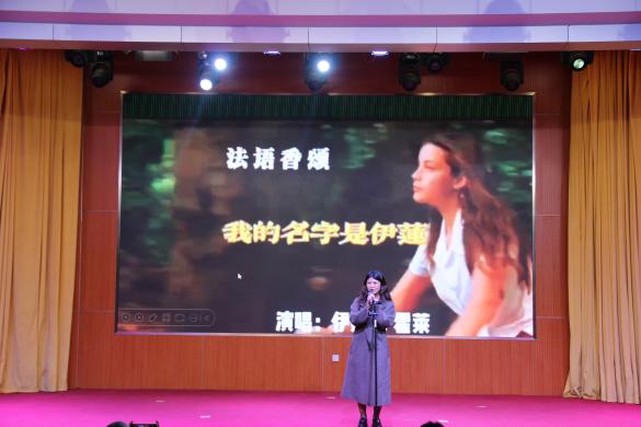 随后,师生们共同呈现了一场别具一格、中外交融的精彩演出。李璐老师深情演唱日语歌曲《また夏を追う》(《再次追寻夏天》),带领观众感受跨越语言的音乐魅力。王建邦老师以一首吉他独唱《A Better Life》,用音乐传递对美好生活的向往。朱敏舟老师演绎法语经典歌曲《我的名字叫伊莲》,歌声优雅动人。占凌轩老师带来的《七里香》,更是勾起了全场师生的青春回忆。