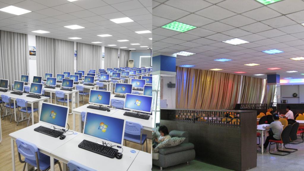 学院有一个2700多平方米的省级英语语言学习示范中心,可同时容纳1500名同学在这里进行语言学习与实践活动。里面有专业实验室、语音实验室,正在筹建一个“教、学、评、测、研一体化大学外语数智实训中心”。还有一个环境优雅的UC,供学生休闲、看书,交友。