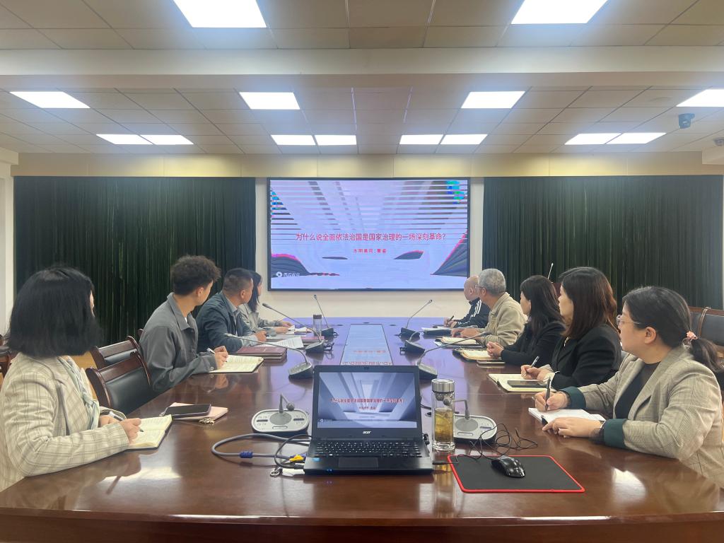 首先,通过观看视频,全体人员学习了习近平总书记在福建、安徽考察时的重要讲话精神,以及“为什么说依法治国是国家治理的一场深刻革命?”,党总支副书记易定国领学了《中共中央关于进一步全面深化改革、推进中国式现代化的决定》中“完善中国特色社会主义法治体系”部分。副院长张嵋琳领学“评估专家视角:高校如何做好新一轮审核评估评建工作”。