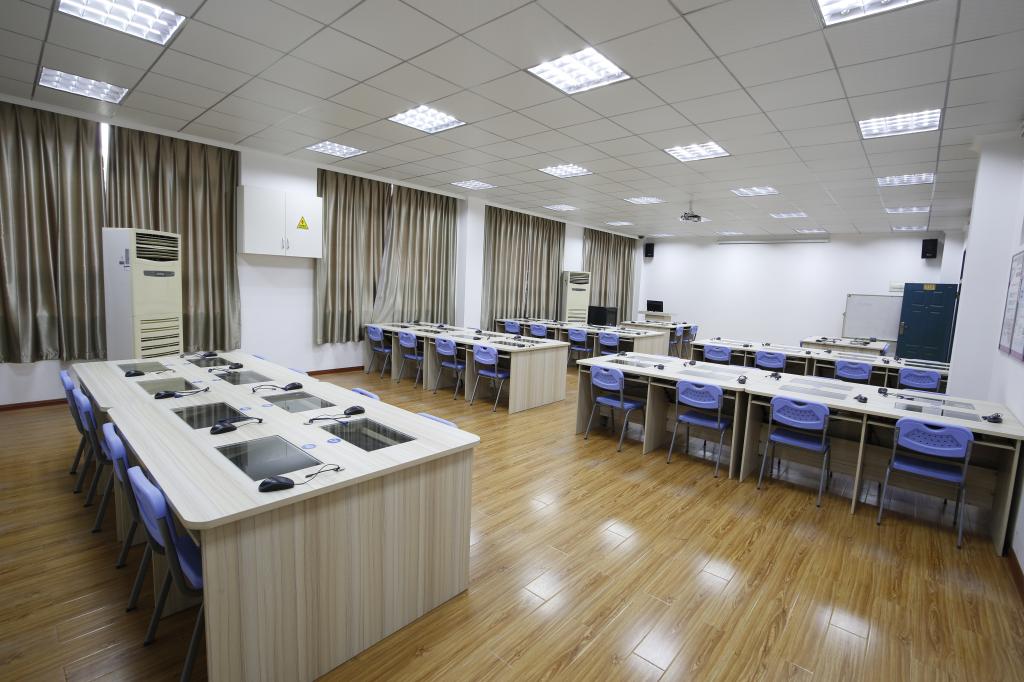 商务技能实践实训室位于X2楼302室, 学生座位数为50个,同时均配有电脑,构成一个小型网络环境,采用教师主控示范性教学和学生基于商务实训软件平台开展的国际贸易实训相结合的方法,使教学与实践紧密结合。学生在过程中能借助实训软件平台完成国际实务型单据、表样、流程的操作。
