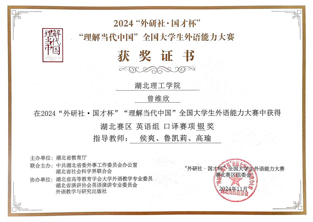 2024年“外研社·国才杯”“理解当代中国”全国大学生外语能力大赛-口译赛项-银奖-曾维欣